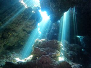 水中に降り注ぐ太陽の日差しが、